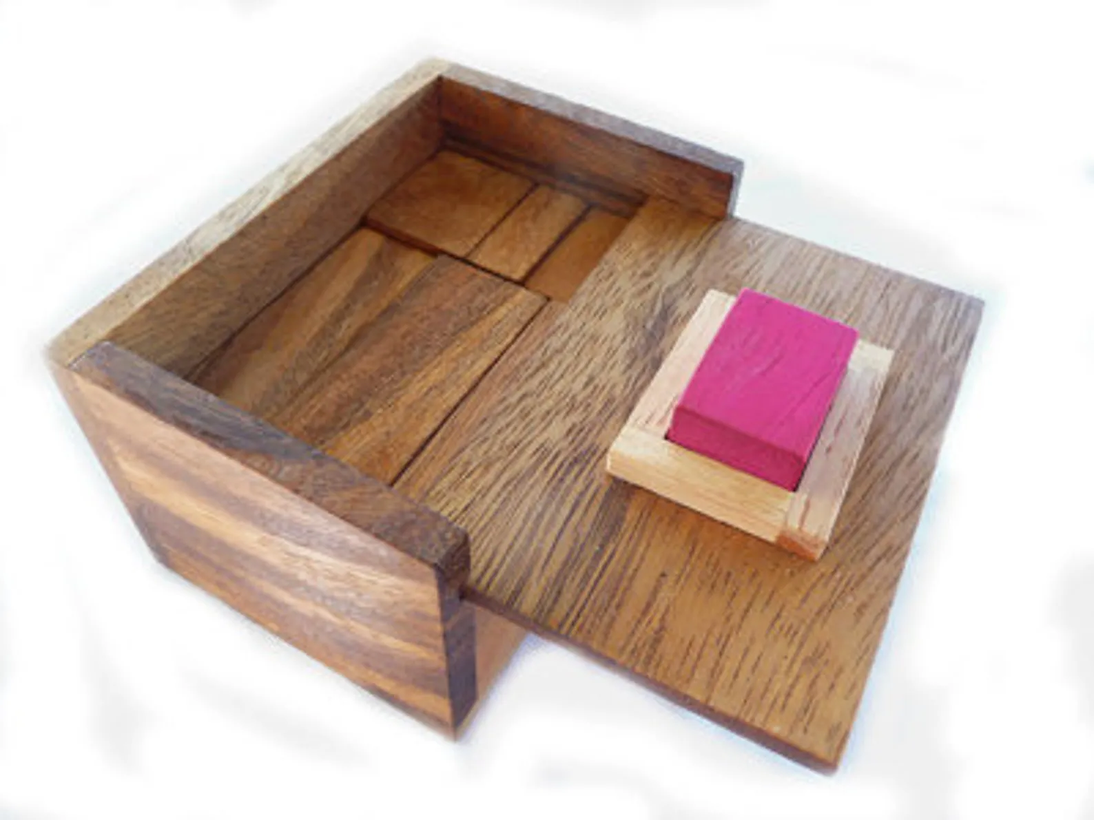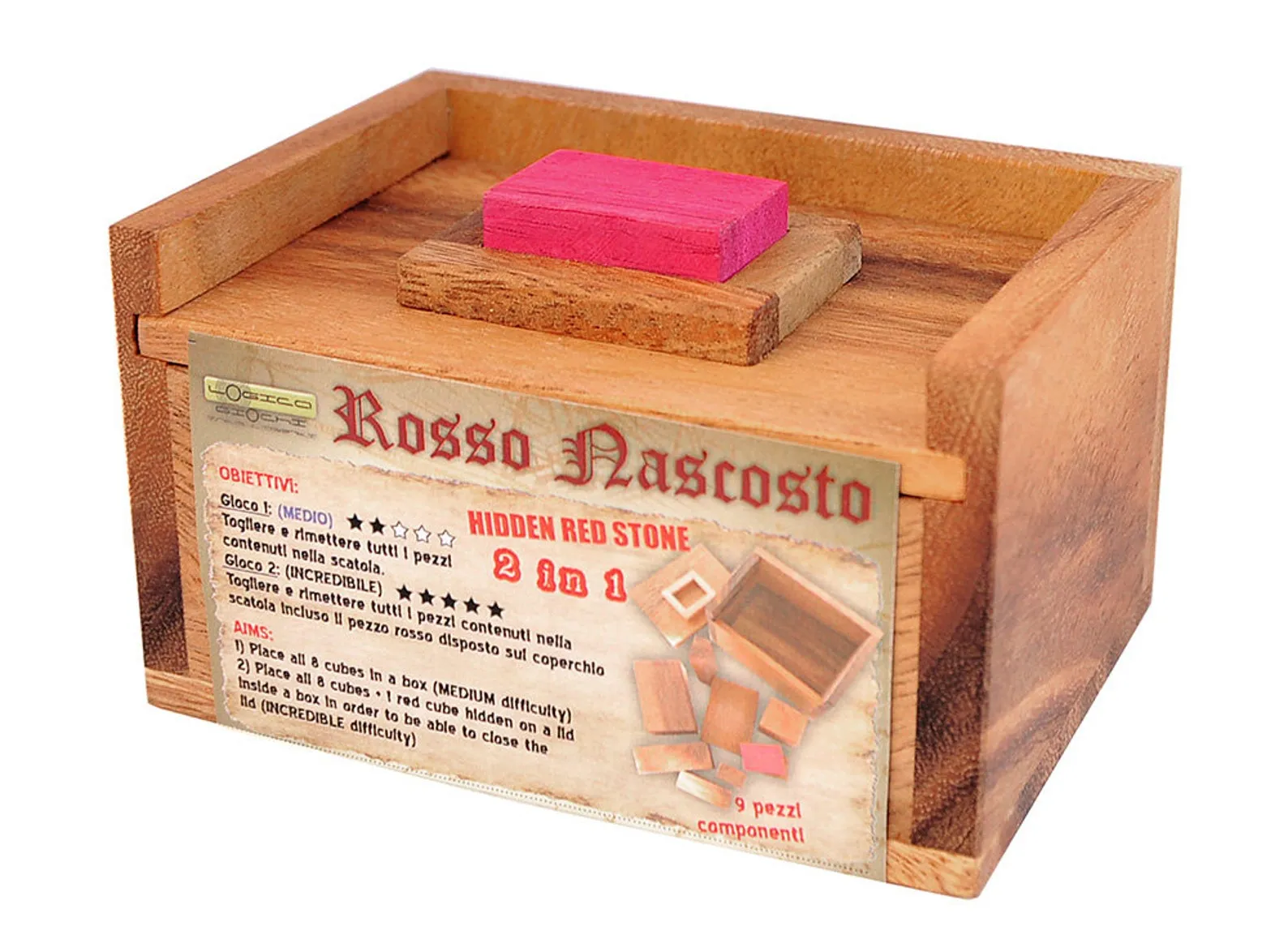 Hidden Red Stone Wooden Trick Puzzle Gift Box