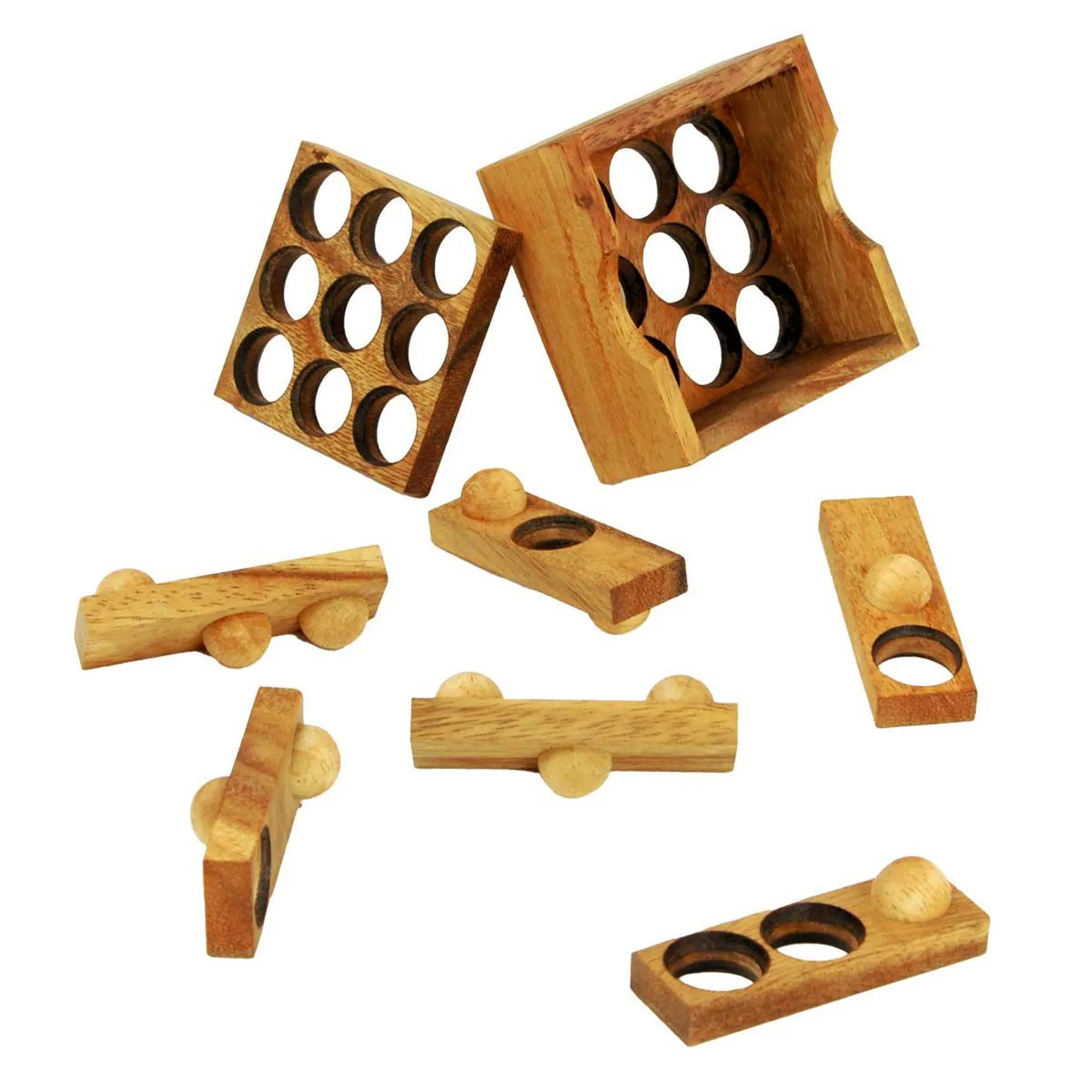 Perspective Wooden Three Dimensional Block Puzzle Shelf Ornament is a layered wooden puzzle that forms an intriguing three dimensional pattern when assembled. The design features blocks arranged at varying depths, creating a visual effect that changes as you move around it. This makes the puzzle an appealing ornament for shelves, sideboards and desks where a subtle sculptural piece is desired.